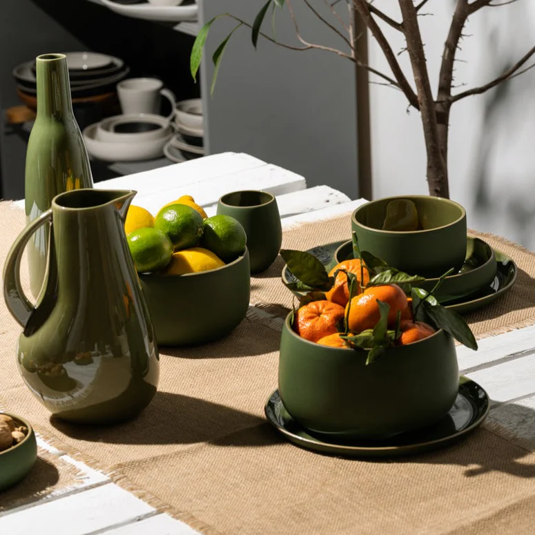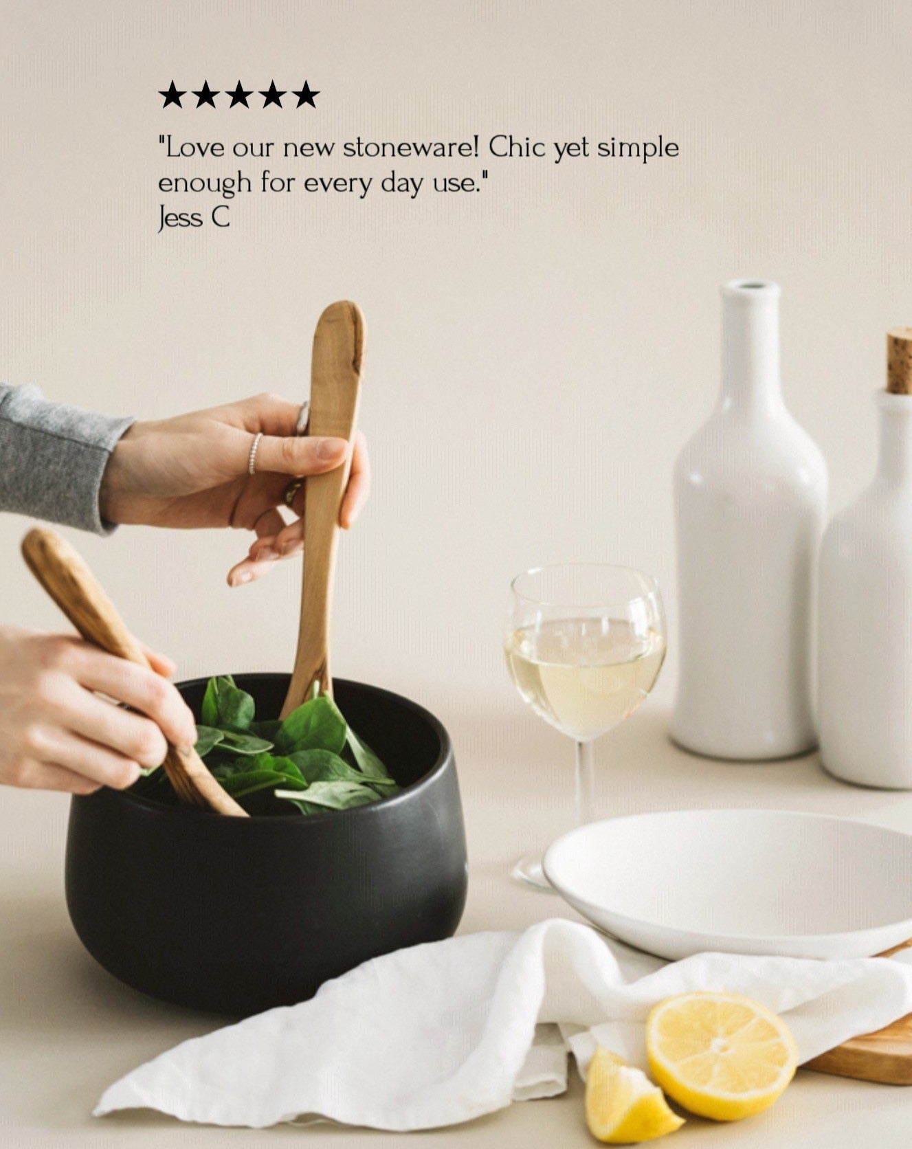 These stoneware dishes are elegant without being fragile. They work just as well for daily meals as they do for hosting guests. Clean, modern, and very well made.