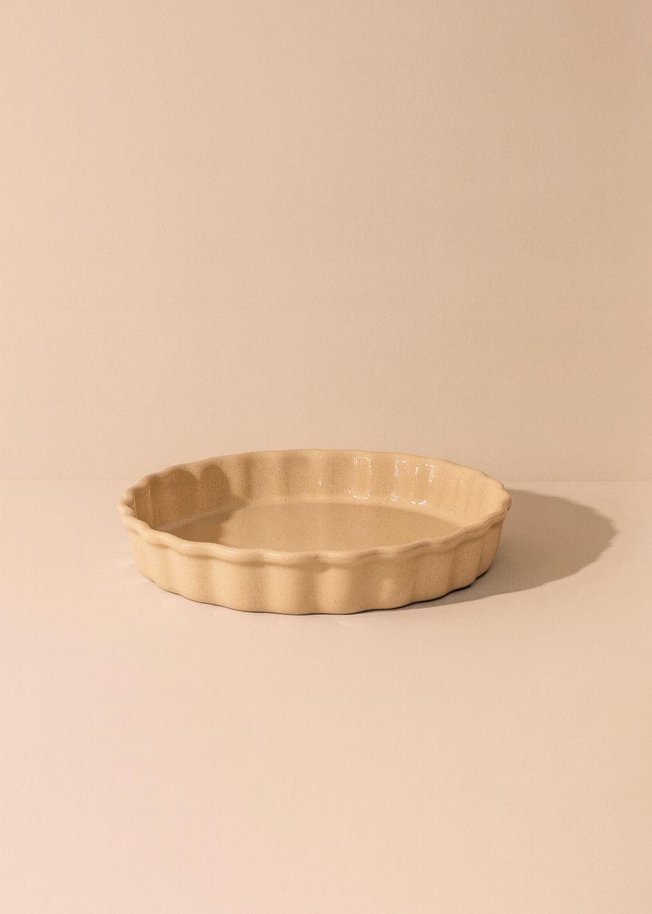Our Rounded Stoneware Pie Dish combines elegant design with practical performance, making it perfect for baking pies, quiches, and more. The angled, wavy side walls allow for easy serving of clean, precise slices. Made from premium enameled stoneware, it ensures even heat distribution for golden crusts and perfectly baked fillings. The glossy, scratch-resistant finish offers durability and easy cleanup. Safe for oven, microwave, freezer, and dishwasher use, this dish brings both beauty and functionality to your kitchen.
